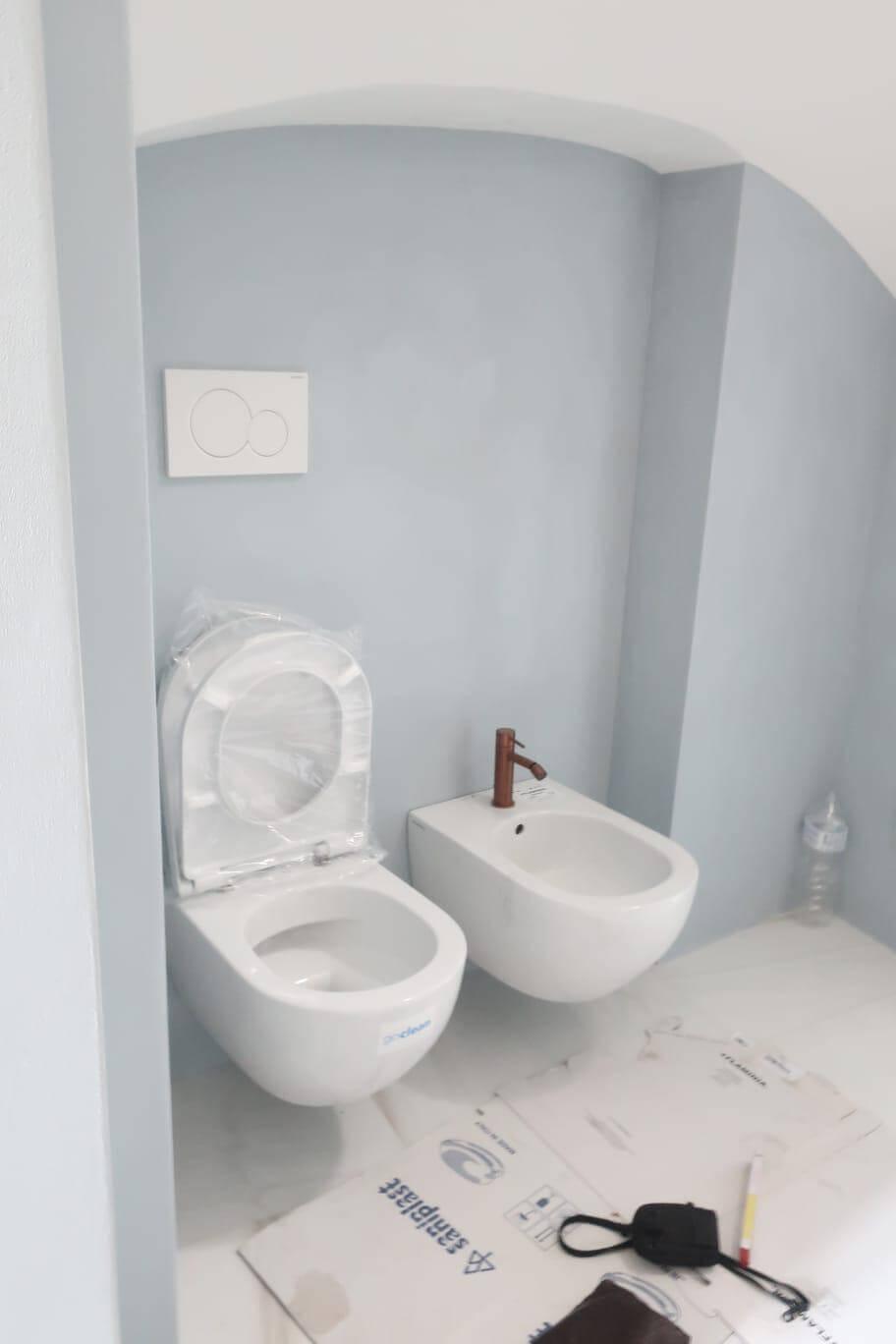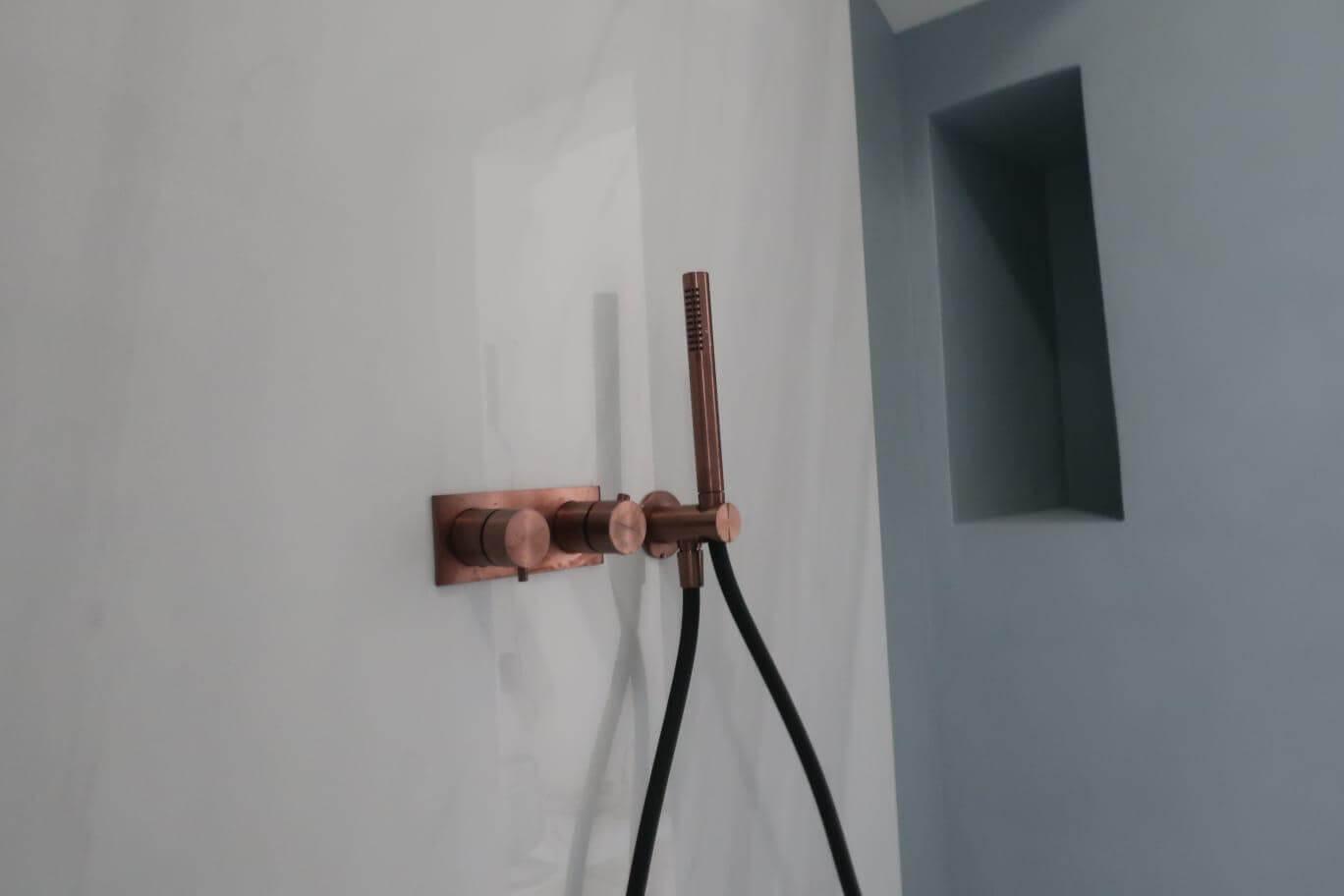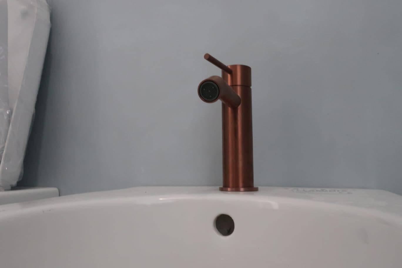 Lieferung: Gessi 316 Armaturen in gebürstetem Kupfer, Flaminia App Sanitärkeramik